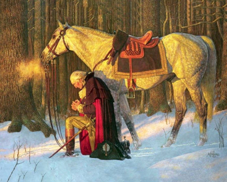 If ever a picture is worth a thousand words, it is the painting of George Washington kneeling and praying by his white horse in the snow at Valley Forge. Because of our forefathers’ prayers and sacrifice, our families enjoy Thanksgiving and Christmas by warm fires, stuffing our bellies, and watching football.