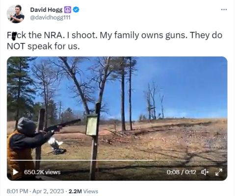 Failed pillow entrepreneur and occasional gun-grabbing loud-mouth David Hogg has come out as pro-gun (sort of). He posted a short video on Twitter, using it as an opportunity to 1) remind us he’s a hypocritical two-faced a**hole and 2) pretend he’s not.
