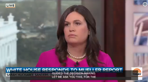Not a lot of lead on this. The title tells the story. Savannah Guthrie on the Today Show is talking to Sarah Sanders. She asks if Mr. Trump owes Bob Mueller an apology. Goes about the way you’d expect.
