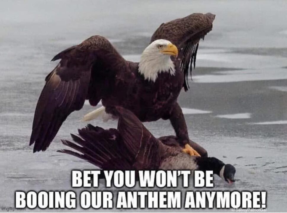 It seems the same woke mind virus has taken Canada by storm as those in attendance with the temerity to boo the stars and stripes were reminded why Canada is still ruled by a monarch with sausage fingers and We the People are 1-0 in revolutionary wars.