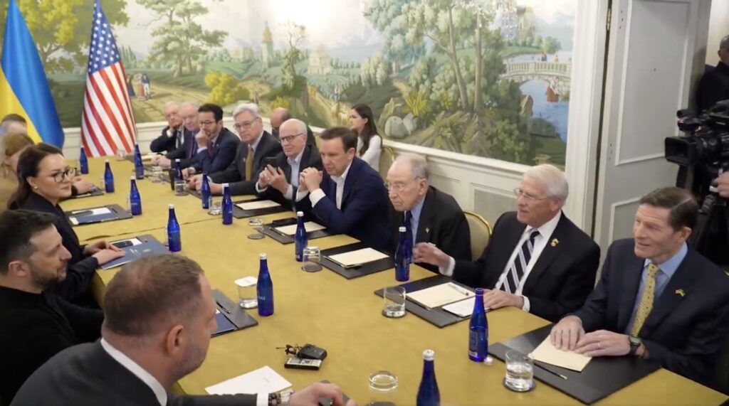 As it turns out, we know who some of the interlopers were on the US side. Before showing up to “sign” the minerals deal negotiated with Ukraine, a bipartisan group of US Senators met with Zelensky in a hotel across the street from the White House.