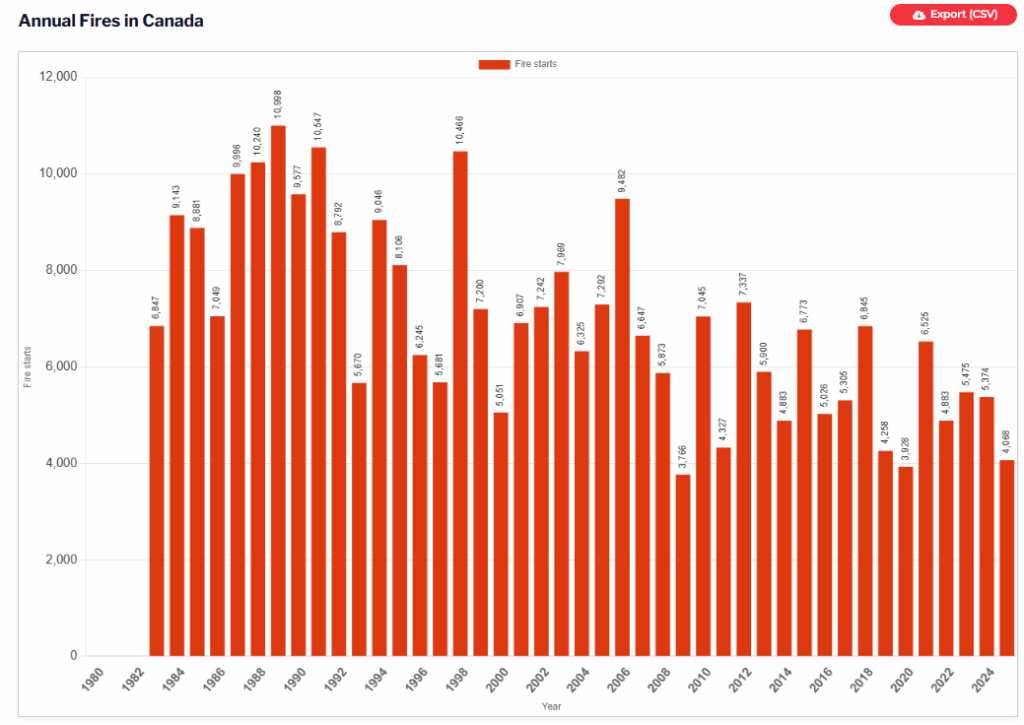 Not much we can do. Maybe Mr. Trump will jack up their tariffs until they figure it out, but what’s to figure out? If, as the reader suggests, many of these fires begin deep in the woods where there are no logging trails, maybe they need to consider more logging? That increase in supply could lower prices, and the US could volunteer to buy more cheap lumber (low or no tariff). That’d be very MAGA – lumber prices have sucked for years.